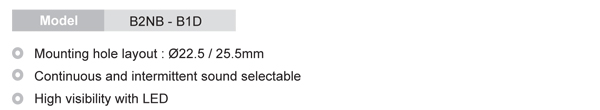 Электромагнитные зуммеры Ø 22/25 мм B2NB-B1 (выступающий тип) поддерживают режимы непрерывного и прерывистого звукового сигнала. Кроме того, они комплектуются яркой светодиодной подсветкой