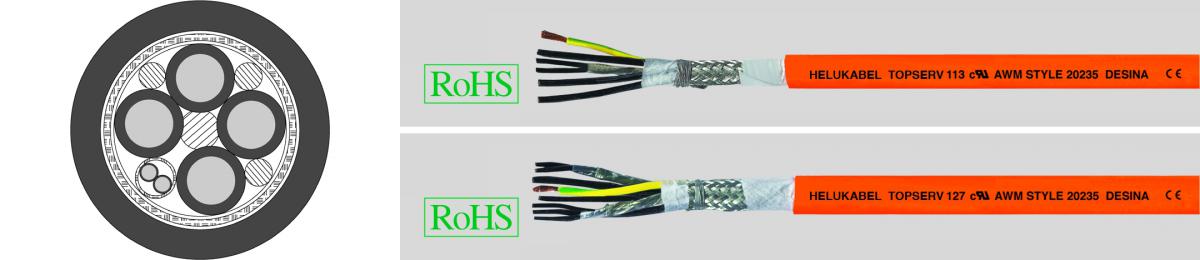 - Специальный PVC-кабель для двигателей в соответствии с UL AWM станд. 2570 CSA AWM с VDE-регистрацией
